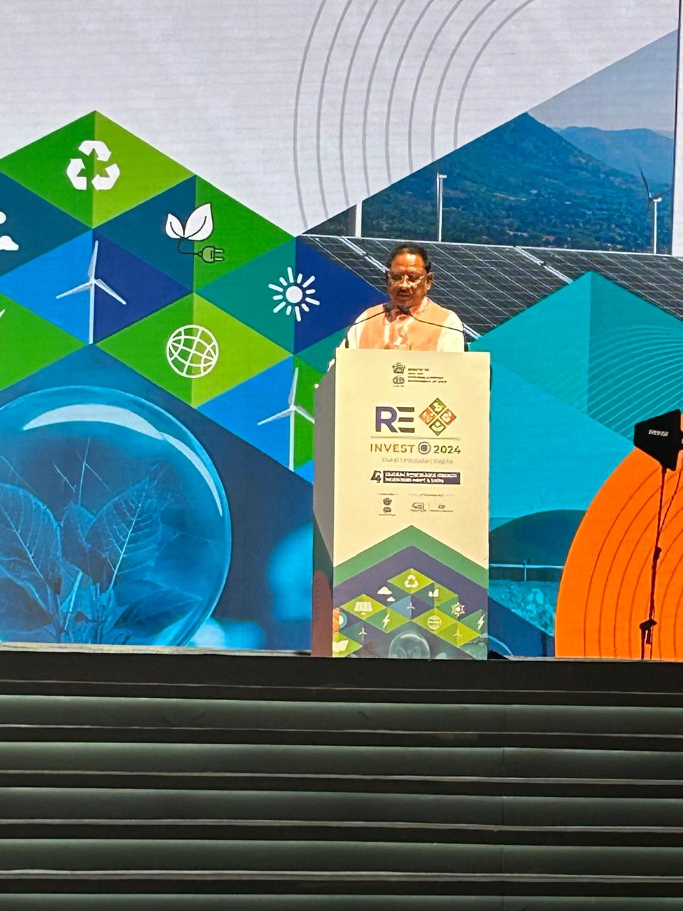 गुजरात के गांधीनगर में चौथे ग्लोबल रिन्यूएबल एनर्जी इन्वेस्टर्स समिट एंड एक्सपो (री-इंवेस्ट-24) का शुभारंभ प्रधानमंत्री श्री नरेन्द्र मोदी ने किया। इसमें छत्तीसगढ़ के मुख्यमंत्री विष्णु देव साय ने भी हिस्सा लिया राज्य में क्लीन और ग्रीन एनर्जी (Clean and green energy) के क्षेत्र में किए जा रहे कार्यों को उन्होंने मंच से साझा किया।