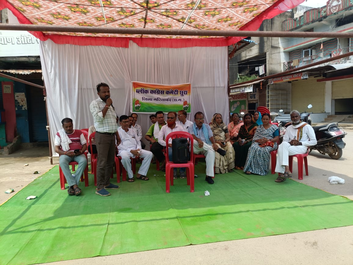 छुरा :– प्रदेश के कवर्धा जिला में जेल मे बंद कैदी के मौत के विरोध मे प्रदेश कांग्रेस कमेटी के आव्हान पर बंद का असर छुरा नगर मे देखने को मिला प्रदेश कांग्रेस के आव्हान पर छुरा ब्लाक कांग्रेस कमेटी द्वारा प्रदेश मे बिगड़ती कानून व्यवस्था के विरोध मे नगर बंद को 12 बजे तक सहयोग मिला, आज सुबह से ही ब्लाक कांग्रेस कमेटी के कार्यकर्ता नगर मे घूम कर बंद के लिये समर्थन मांगा जिसपर नगर के व्यापारियों ने समर्थन कर अपनी दुकाने बंद रखी।